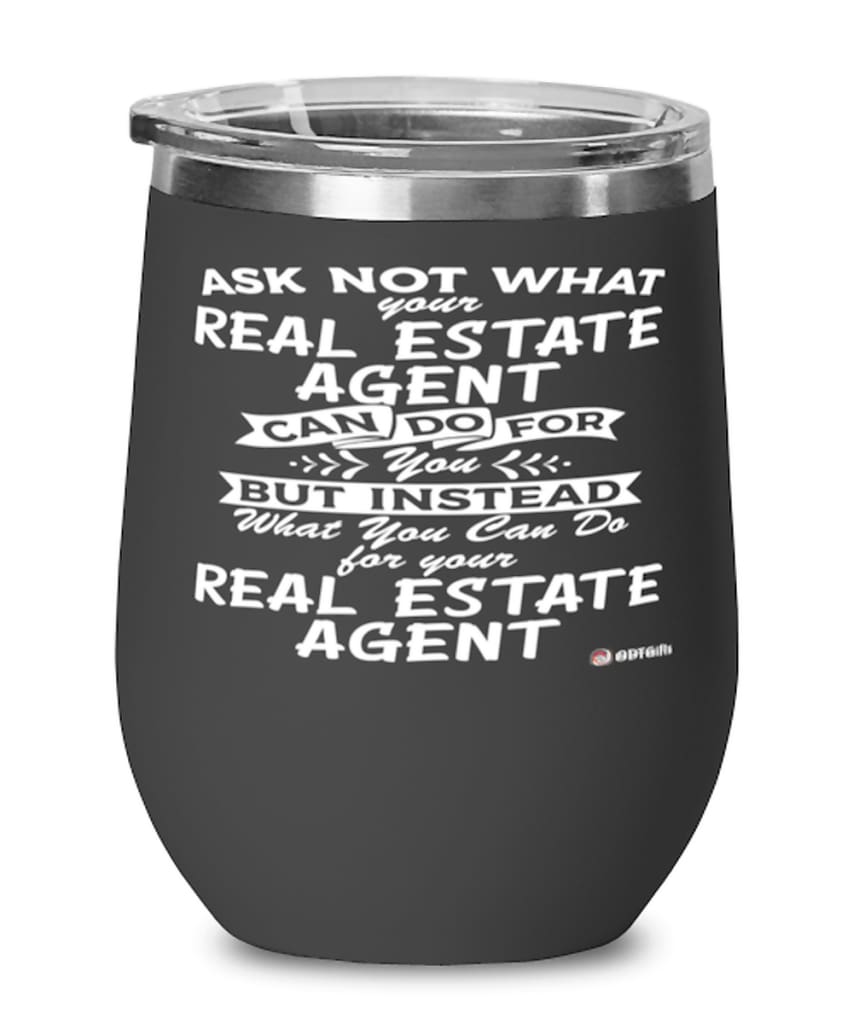 Funny Real Estate Agent Wine Glass Ask Not What Your Real Estate Agent Can Do For You 12oz Stainless Steel Black