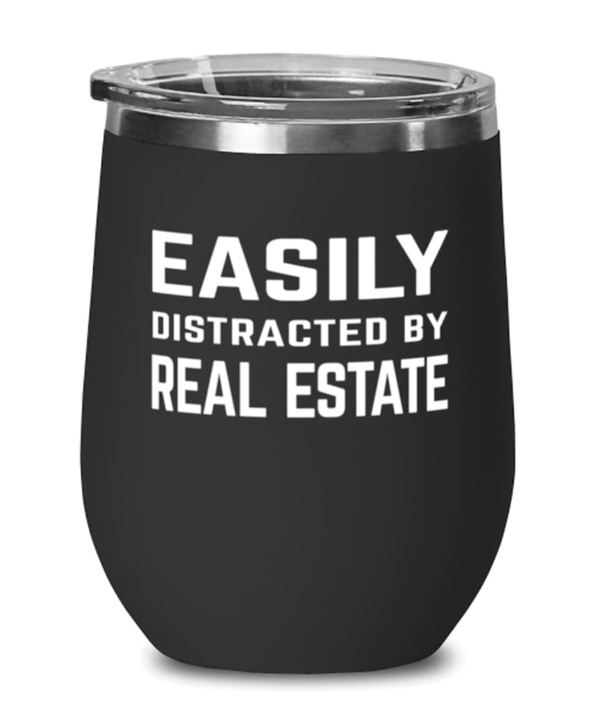 Funny Realtor Wine Tumbler Easily Distracted By Real Estate Stemless Wine Glass 12oz Stainless Steel