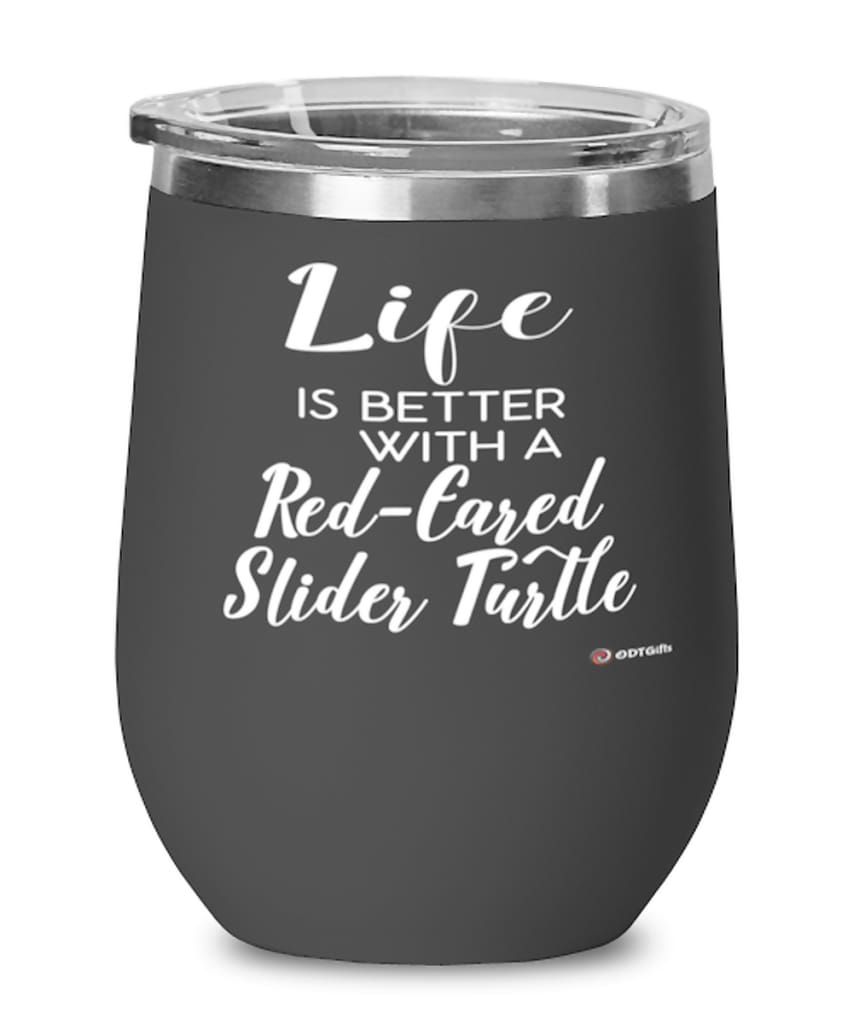 Funny Red-eared Slider Turtle Wine Glass Life Is Better With A Red-eared Slider Turtle 12oz Stainless Steel Black