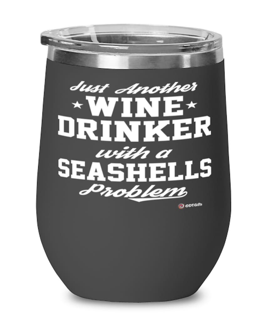 Funny Seashells Wine Glass Just Another Wine Drinker With A Seashells Problem 12oz Stainless Steel Black