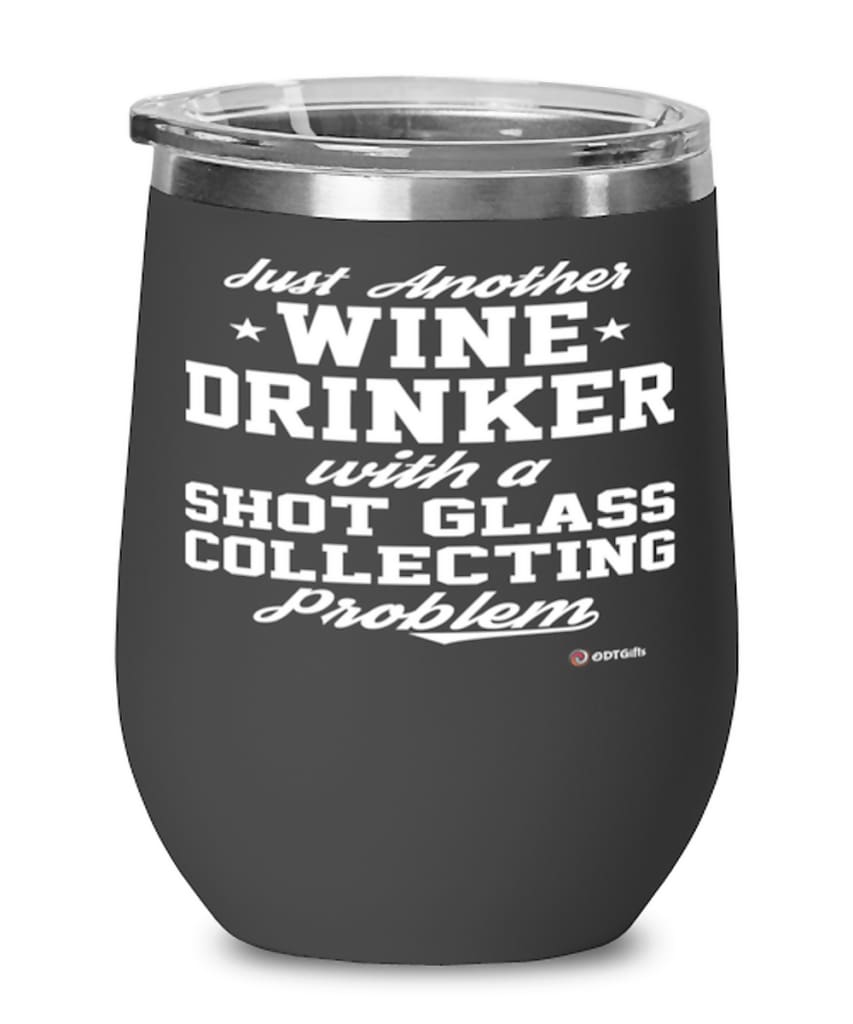 Funny Shot Glass Collector Wine Glass Just Another Wine Drinker With A Shot Glass Collecting Problem 12oz Stainless Steel Black