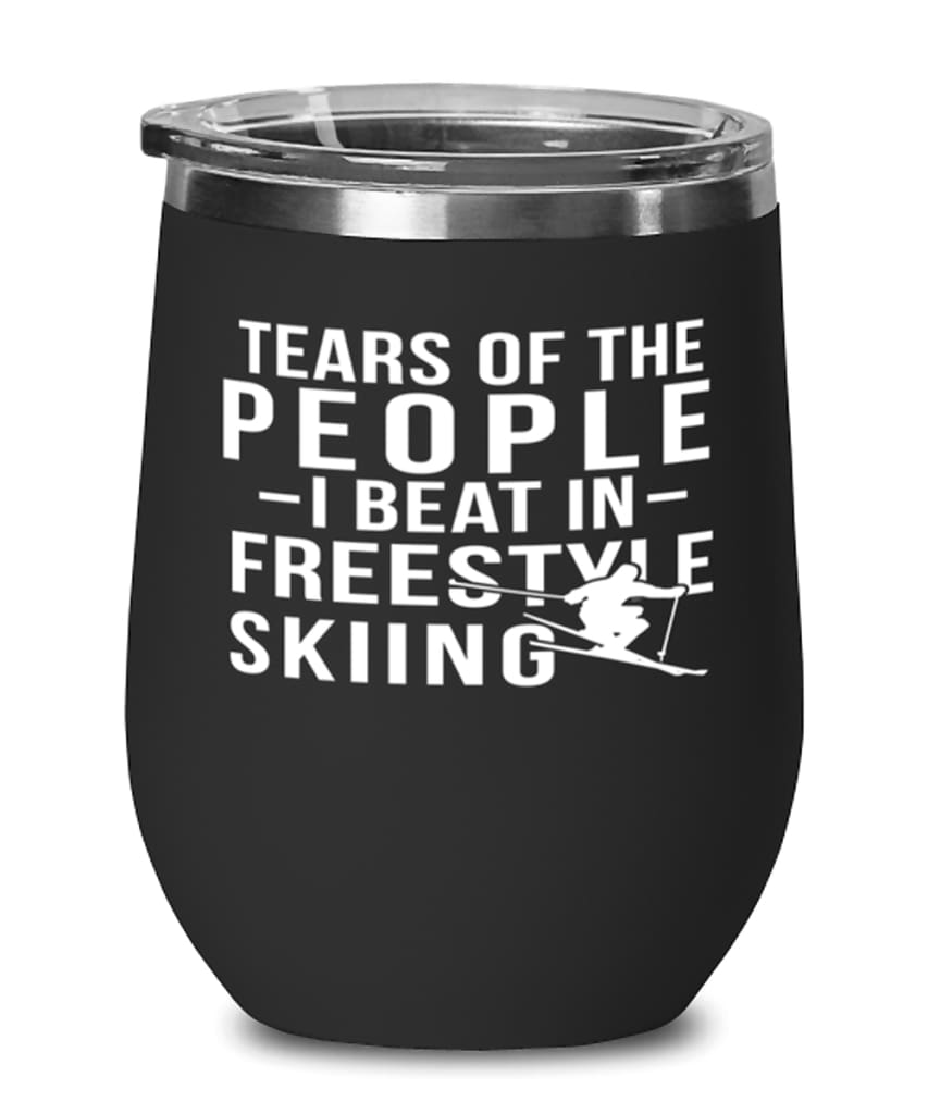 Funny Skier Wine Tumbler Tears Of The People I Beat In Freestyle Skiing Stemless Wine Glass 12oz Stainless Steel
