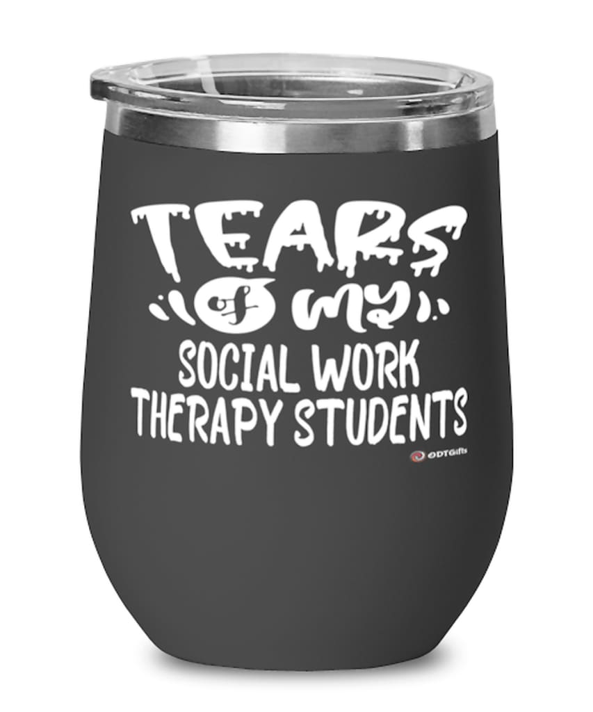 Funny Social Work Therapy Professor Teacher Wine Glass Tears Of My Social Work Therapy Students 12oz Stainless Steel Black