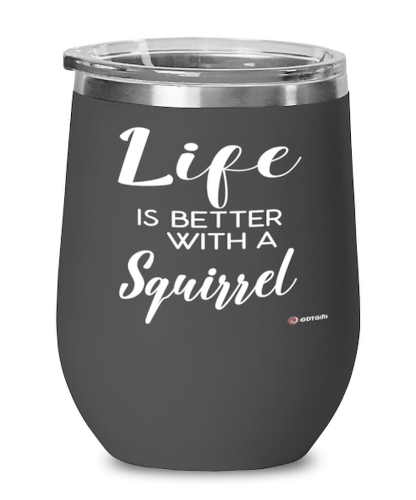 - Squirrel Vacuum Insulated Stemless Wine Glass w/Lid.