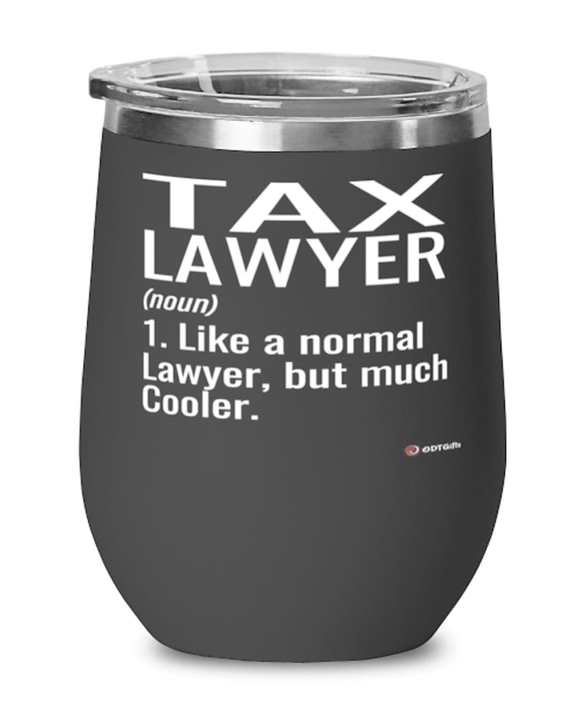 A beautiful stainless steel powder-coated stemless wine glass with a lid for Tax Lawyer. It's the perfect gift for wine drinkers! This wine tumbler has a double-wall vacuum insulated for hot and cold liquids, and we...