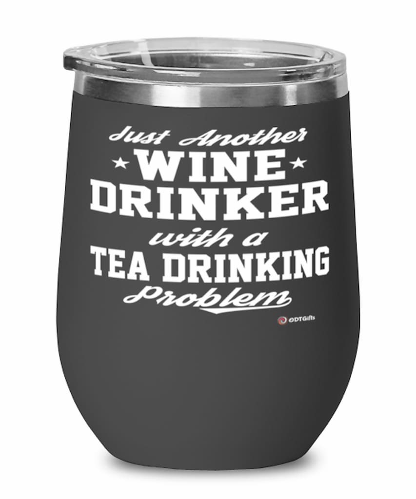 - Tea Drinking Vacuum Insulated Stemless Wine Glass w/Lid.