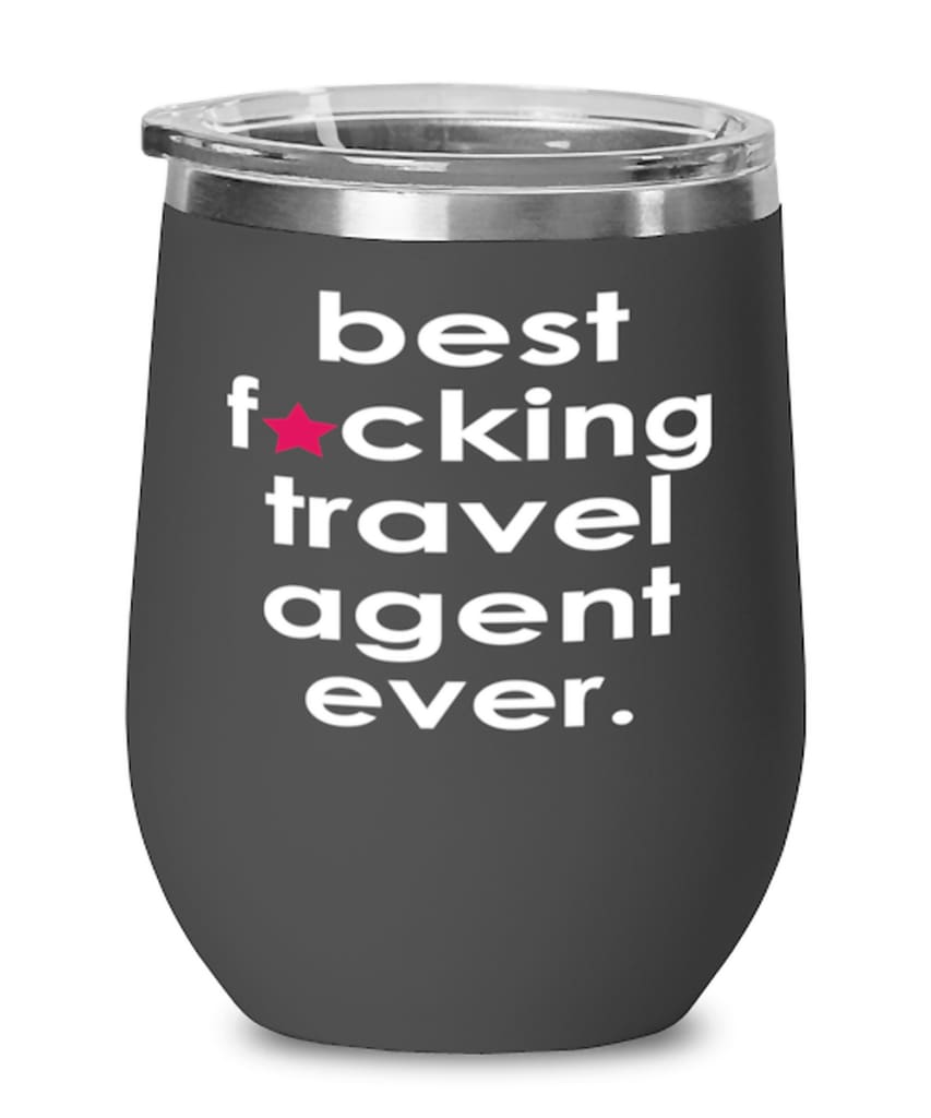 Funny Travel Agent Wine Glass B3st F-cking Travel Agent Ever 12oz Stainless Steel Black
