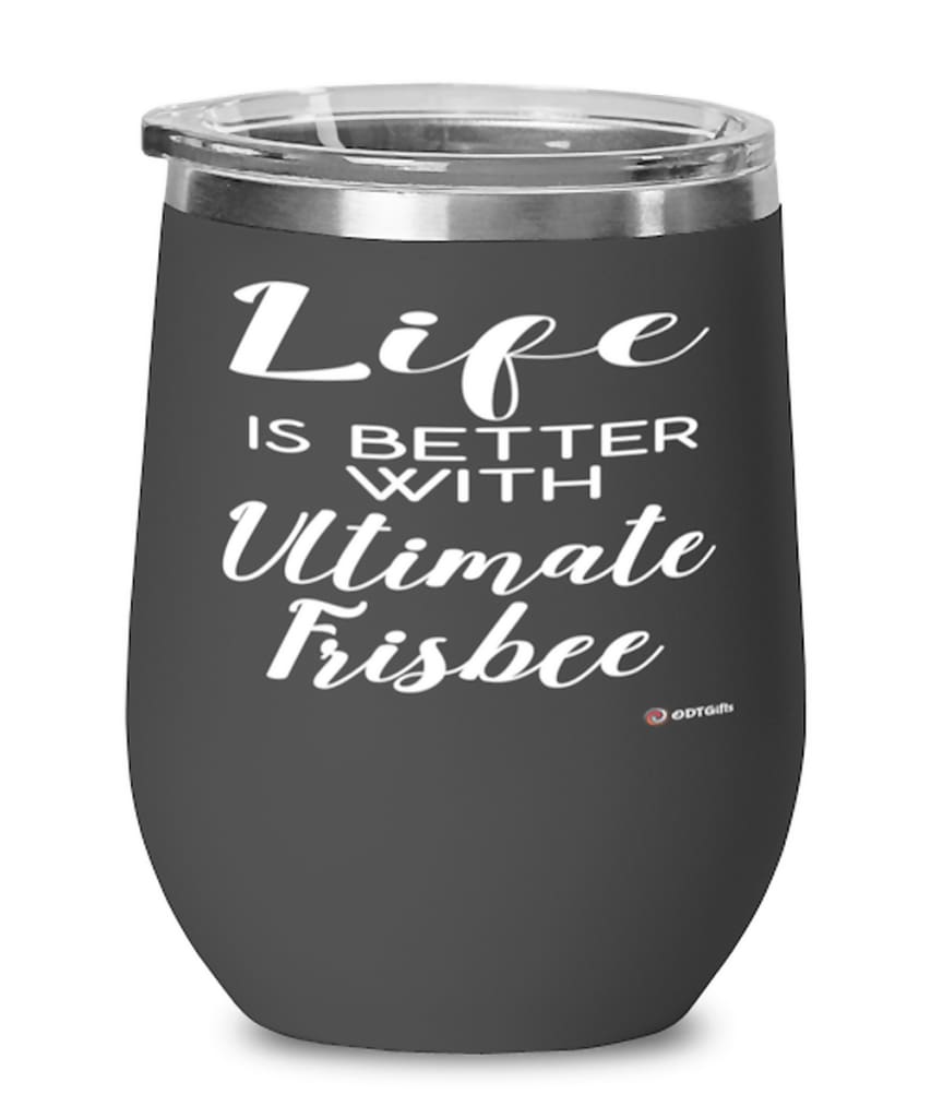 Funny Ultimate Frisbee Wine Glass Life Is Better With Ultimate Frisbee 12oz Stainless Steel Black