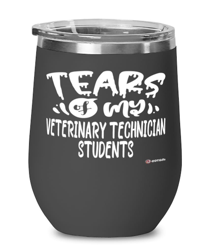 Funny Veterinary Technician Professor Teacher Wine Glass Tears Of My Veterinary Technician Students 12oz Stainless Steel Black