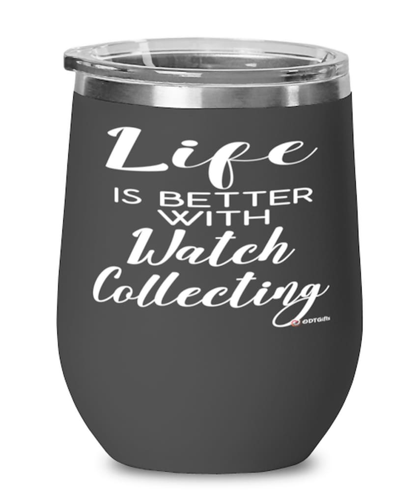 Funny Watch Collector Wine Glass Life Is Better With Watch Collecting 12oz Stainless Steel Black