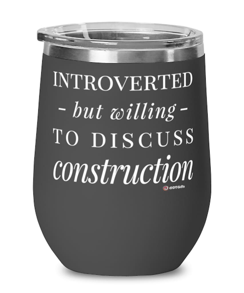 Funny Wine Glass Introverted But Willing To Discuss Construction 12oz Stainless Steel Black