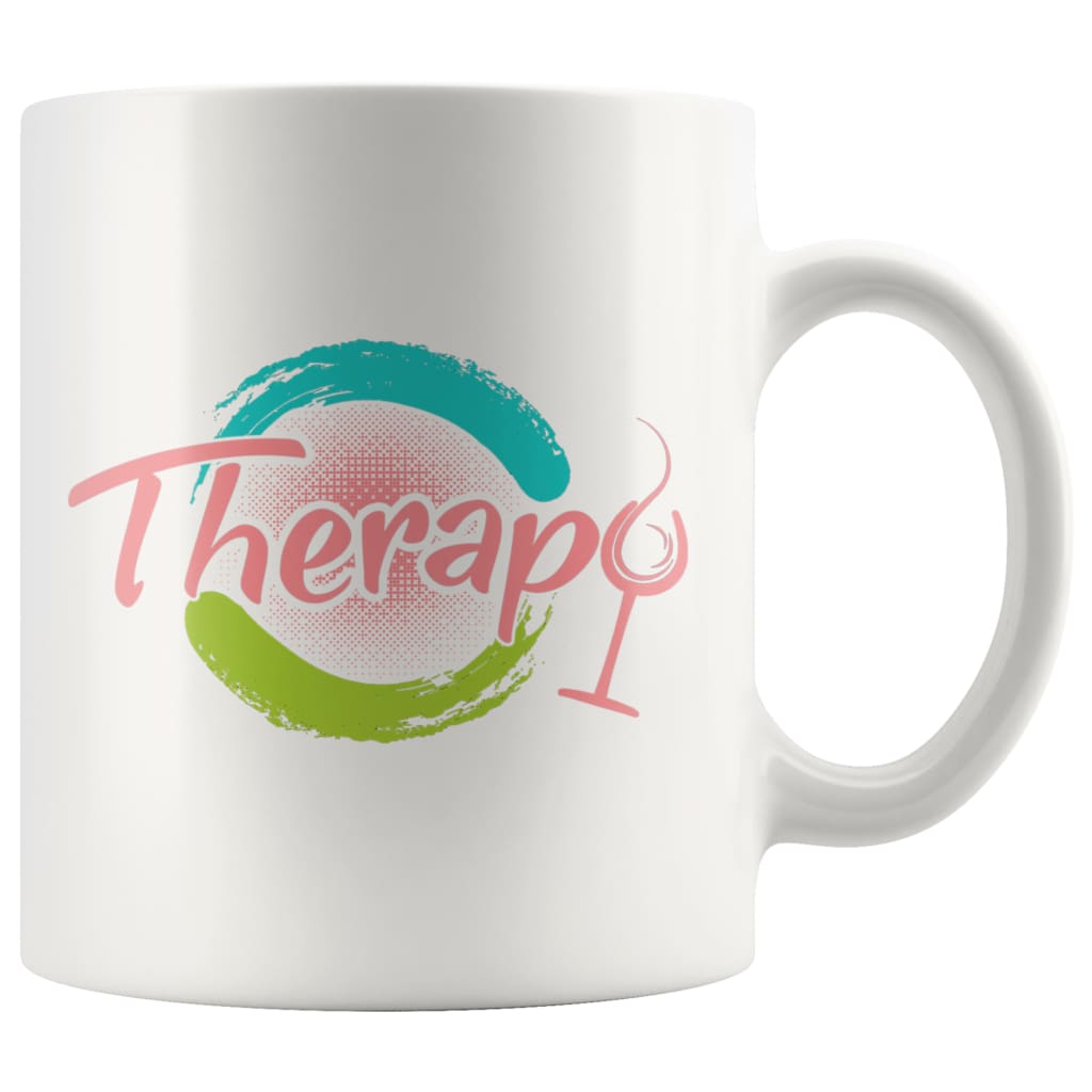 Funny Wine Mug states Therapy.This high quality 11oz. ceramic white mug has a premium hard coat providing a crisp and vibrant color reproduction that will last for years. With a high gloss premium white finish this coffee...