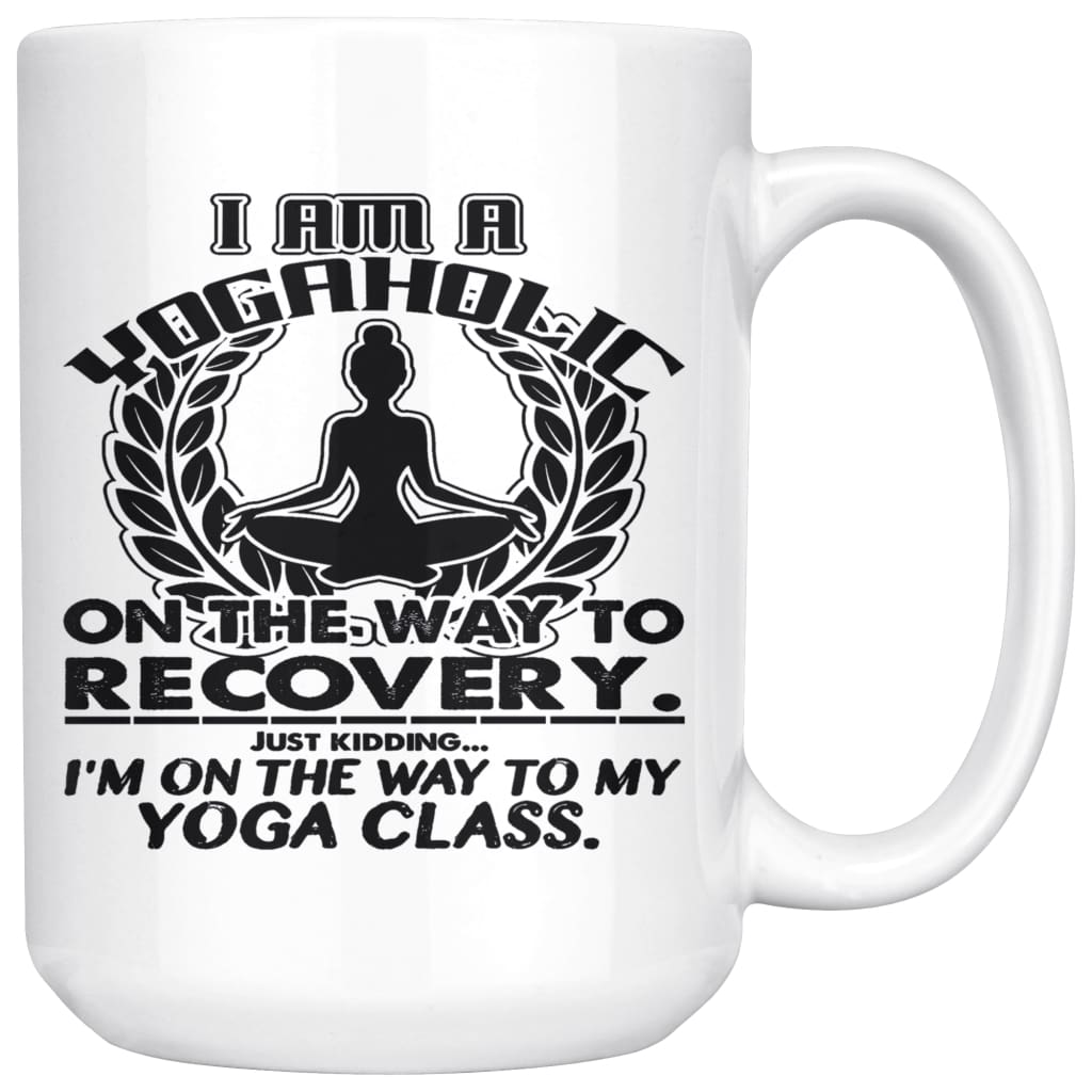 Funny Yoga Mug states I Am Yogaholic On The Way To Recovery Just Kidding I'm On The Way To My Yoga Class.