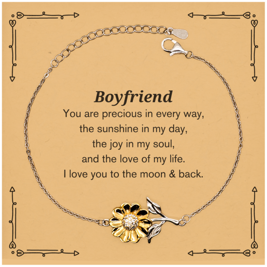 Embrace the spirit of the sunflower and let this Boyfriend bracelet illuminate your special moments. Brighten someone's day with this meaningful token of affection.