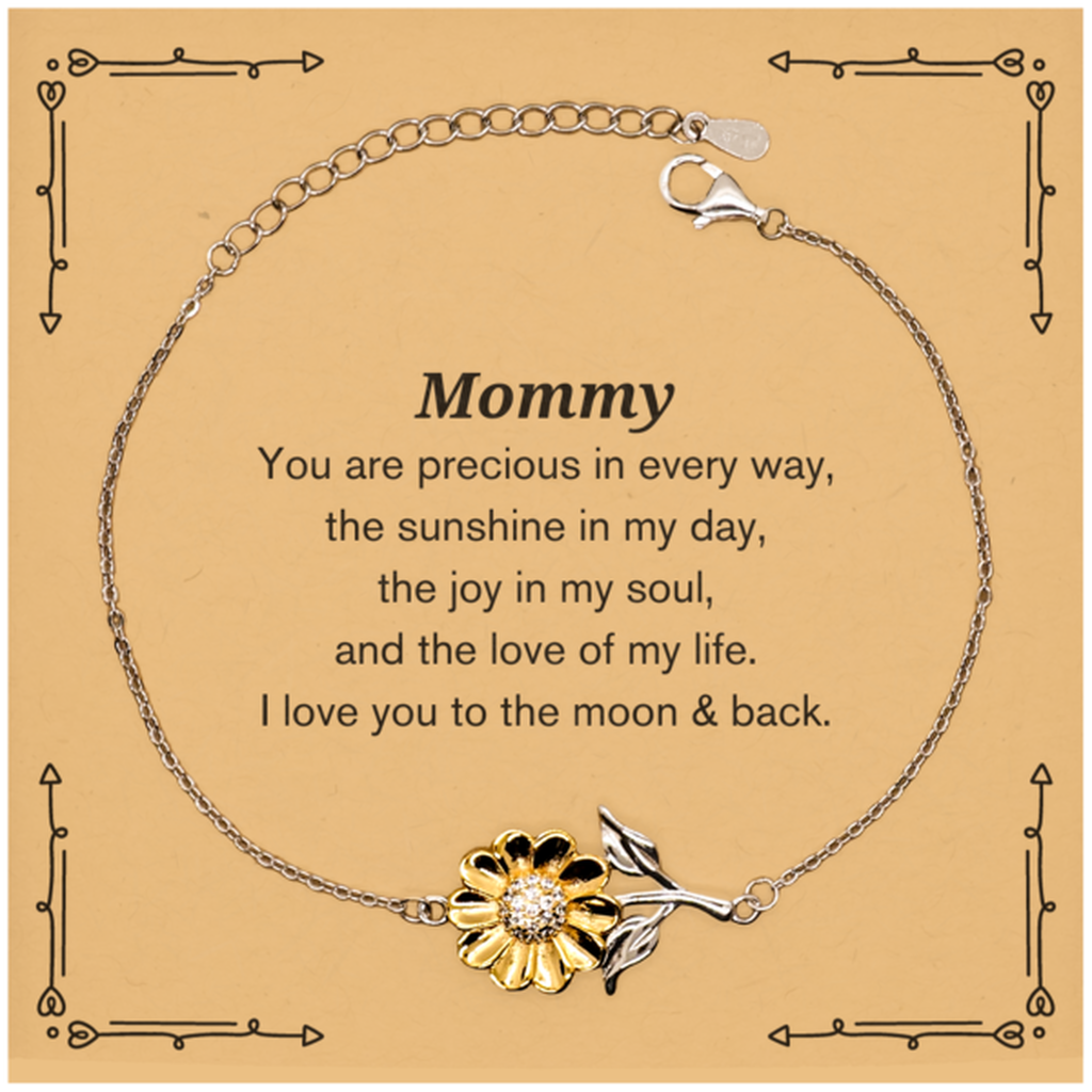 Embrace the spirit of the sunflower and let this Mommy bracelet illuminate your special moments. Brighten someone's day with this meaningful token of affection.