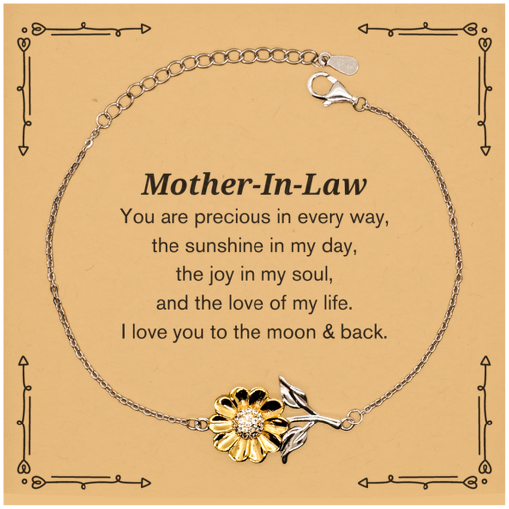 Embrace the spirit of the sunflower and let this Mother-In-Law bracelet illuminate your special moments. Brighten someone's day with this meaningful token of affection.