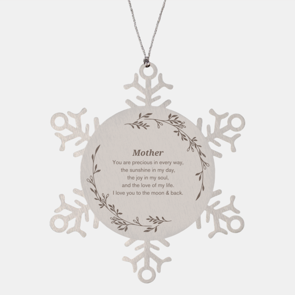 Embrace the spirit of the season with this Snowflake Mother Ornament and infuse your holiday festivities with love and elegance. Elevate your Christmas decor with this timeless piece that embodies the true meaning of the holidays. Make your celebrations truly special with this exceptional ornament that captures the essence of Mother.