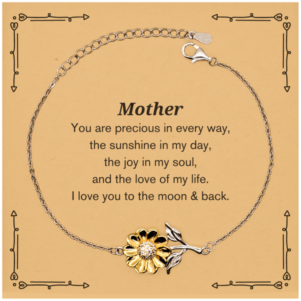 Embrace the spirit of the sunflower and let this Mother bracelet illuminate your special moments. Brighten someone's day with this meaningful token of affection.