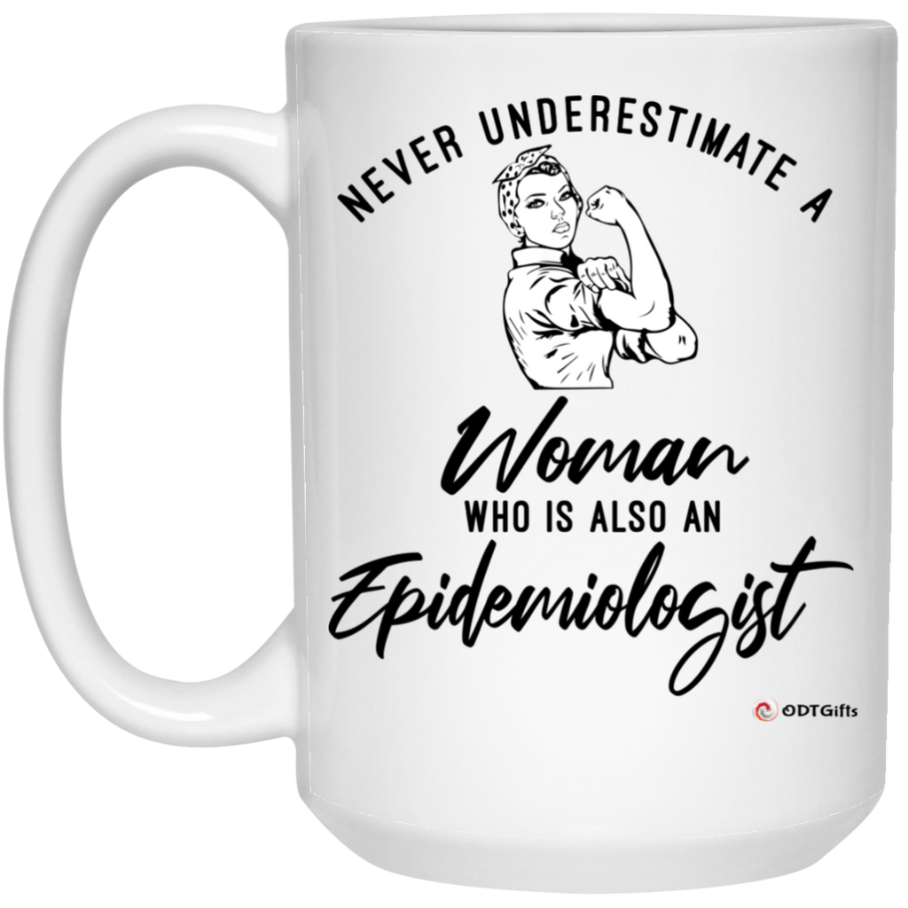 Epidemiologist Mug Never Underestimate A Woman Who Is Also An Epidemiologist Coffee Cup 15oz White High quality 15oz white gloss ceramic mug Top to bottom full wrap decoration Microwave & Dishwasher safe ORCA Coating™ for maximum...