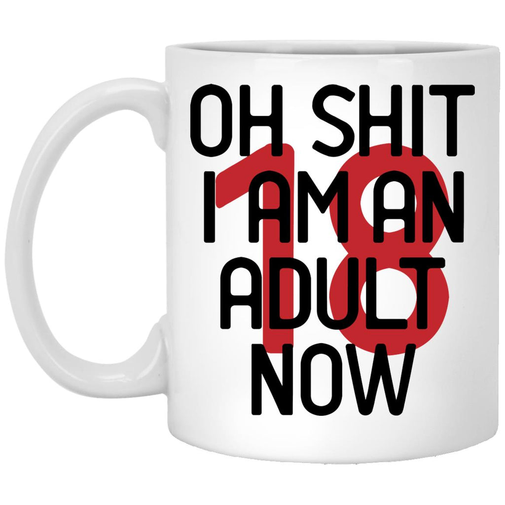 Funny 18th Birthday Mug Oh Sh1t I Am An Adult Now Coffee Cup 11oz White   High quality ceramic mug Dishwasher safe Microwave safe White gloss 11 oz Decorated with full wrap dye sublimation