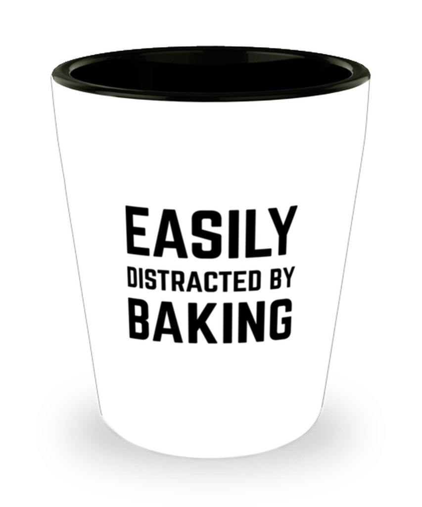 - Stylish 1.5 ounce Baking shot glass with a sleek white exterior and contrasting black interior