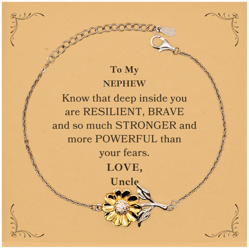 Nephew, You're Brave and so much Stronger Sunflower Bracelet with Card. Gift for Nephew. Christmas Motivational Gift From Uncle. Best Idea Gift for Birthday