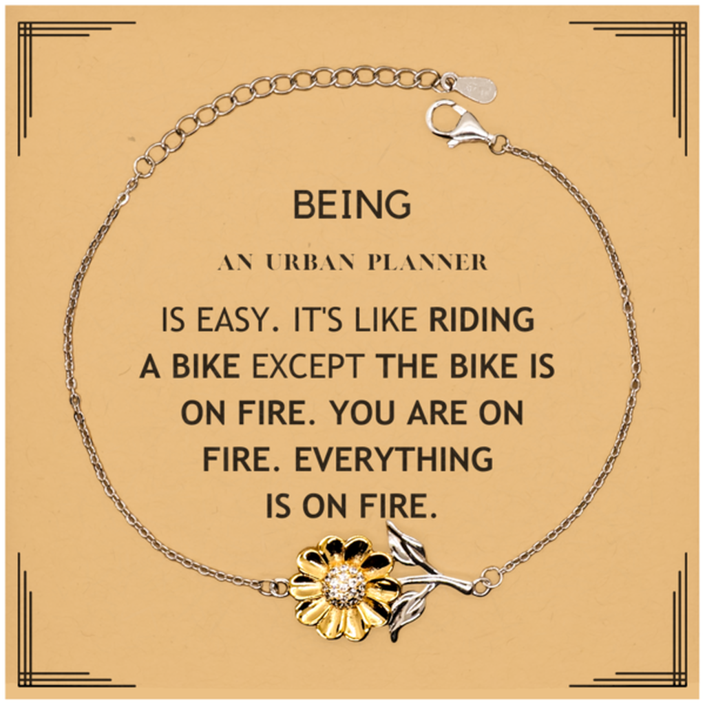 Sarcastic Urban Planner Gifts, Birthday Christmas Unique Sunflower Bracelet For Urban Planner for Coworkers, Men, Women, Friends Being Urban Planner is Easy. It's Like Riding A Bike Except The Bike Is On Fire. You Are On Fire. Everything Is On Fire